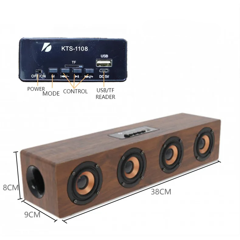 Caixa De Som Kts 1108 Bluetooth Madeira Alto-falante Portátil