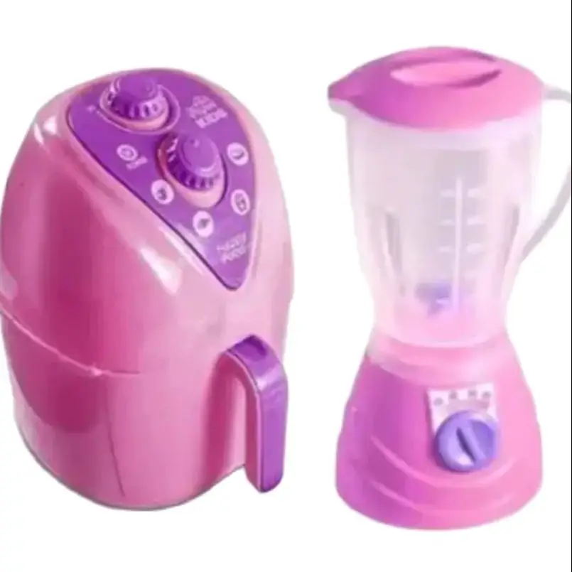 O Kit vem com 6 Brinquedos sendo eles Airfryer, Potes de Mantimentos Arroz, Feijão, Açucar e Café e Liquidificador